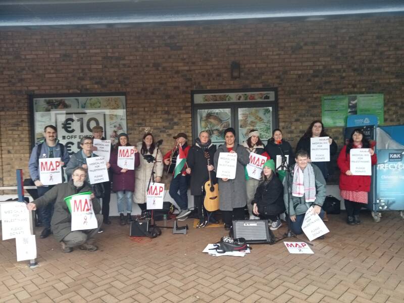On the 17th of December, Mullingar 4 All and Longford-Westmeath IPSC, held a musical fundraiser outside the Harbour Place Shopping Centre with local musicians, SuZen, John Staunton and Kathryn Nea, as well as local artist, Trea Ivory, who was selling Palestinians prints, with all proceeds going to Medical aid for Palestinians.